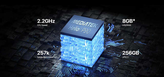 В "железном" плане модель работает под управлением восьмиядерного процессора отнюдь не первой свежести MediaTek Helio P90, который впервые сошёл с конвейера в 2018 году. Объемы памяти на борту смартфона распределены в соотношении 8 ГБ ОЗУ против 128 ГБ места во внутреннем накопителе. Лоток расширения в модели гибридный - он может принять либо вторую SIM, либо карточку памяти microSD (до 512 ГБ включительно).